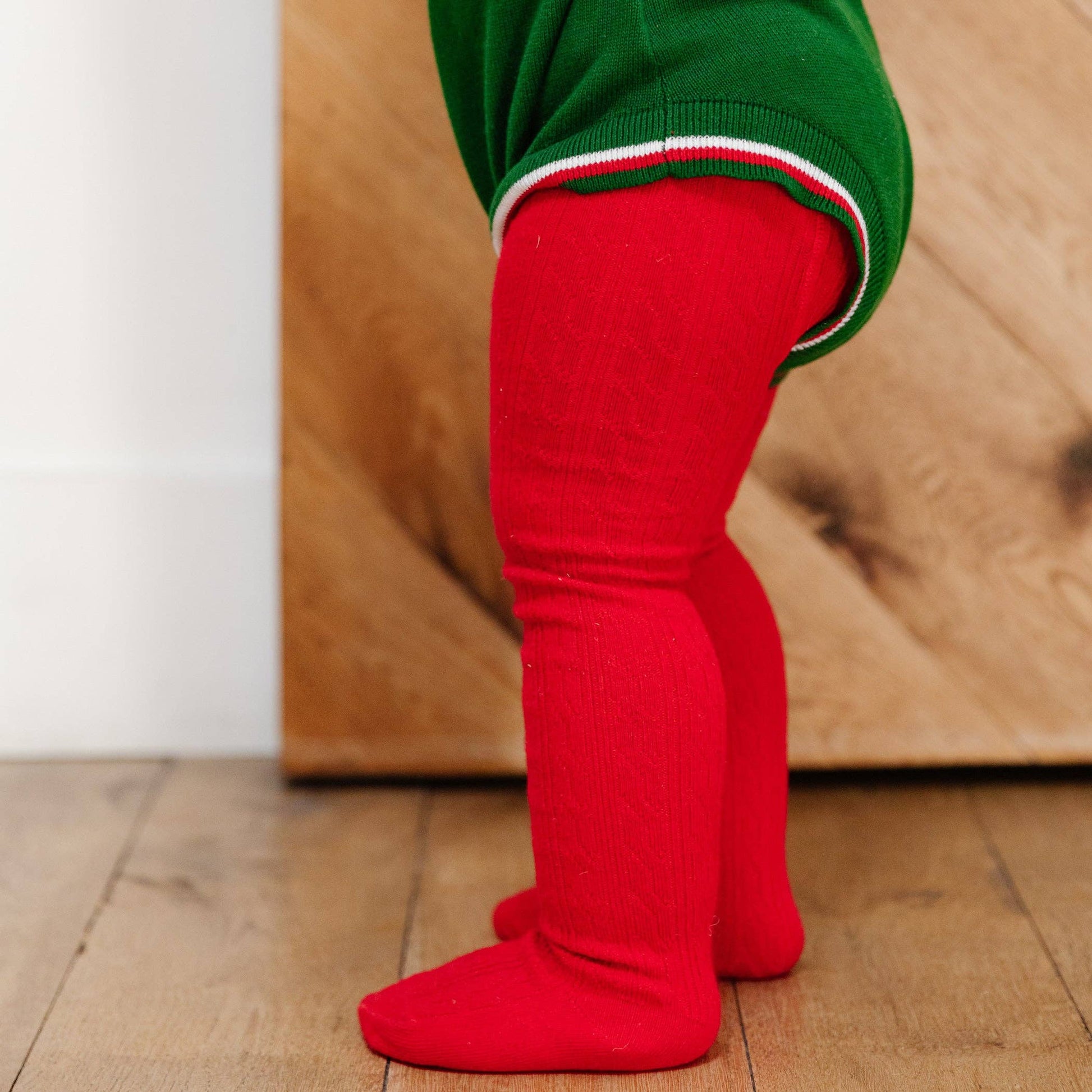 Bright Red Cable Knit Tights for babies, toddlers and girls!