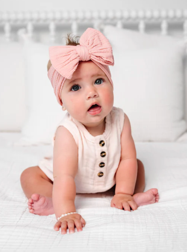 The stretchy, one-size-fits-all design ensures a gentle, comfy fit for newborns and toddlers alike, making it an easy go-to accessory for everyday wear or special moments. Timeless, fun, and irresistibly cute!