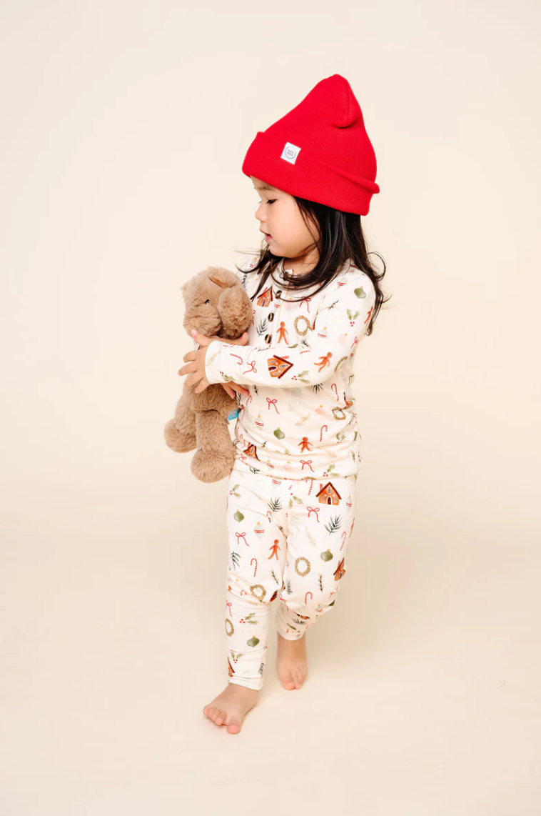 Stretchy, soft, and oh so warm, these beanies were designed and created to be worn over and over. With an adjustable cuff, you can wear it cap style or slouchy. Pompom or not, there is something cozy for everyone in the family. #twinning