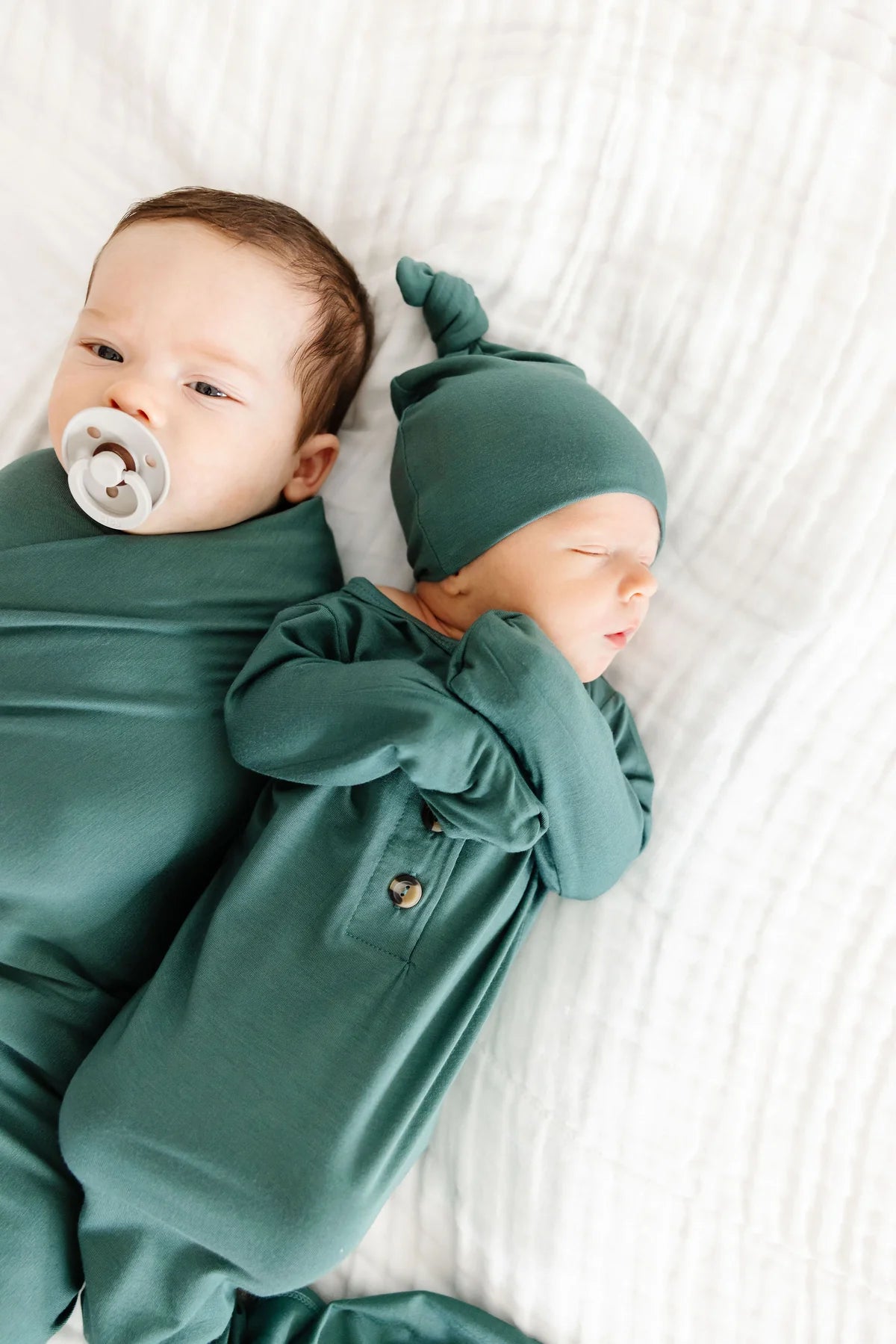 The easiest tie-bottom outfit for day or night. Made for hassle free diaper changes and gentle dressing, I designed this with a button-down front and tie bottom for simple closure (no more snaps at 2am!). Fold over wrist cuffs are the most thoughtful finishing touch.
