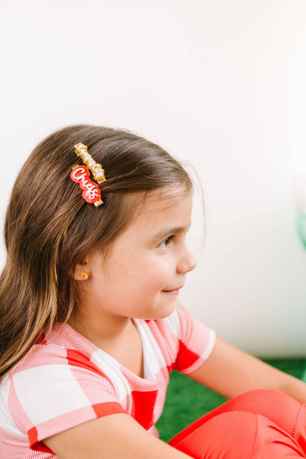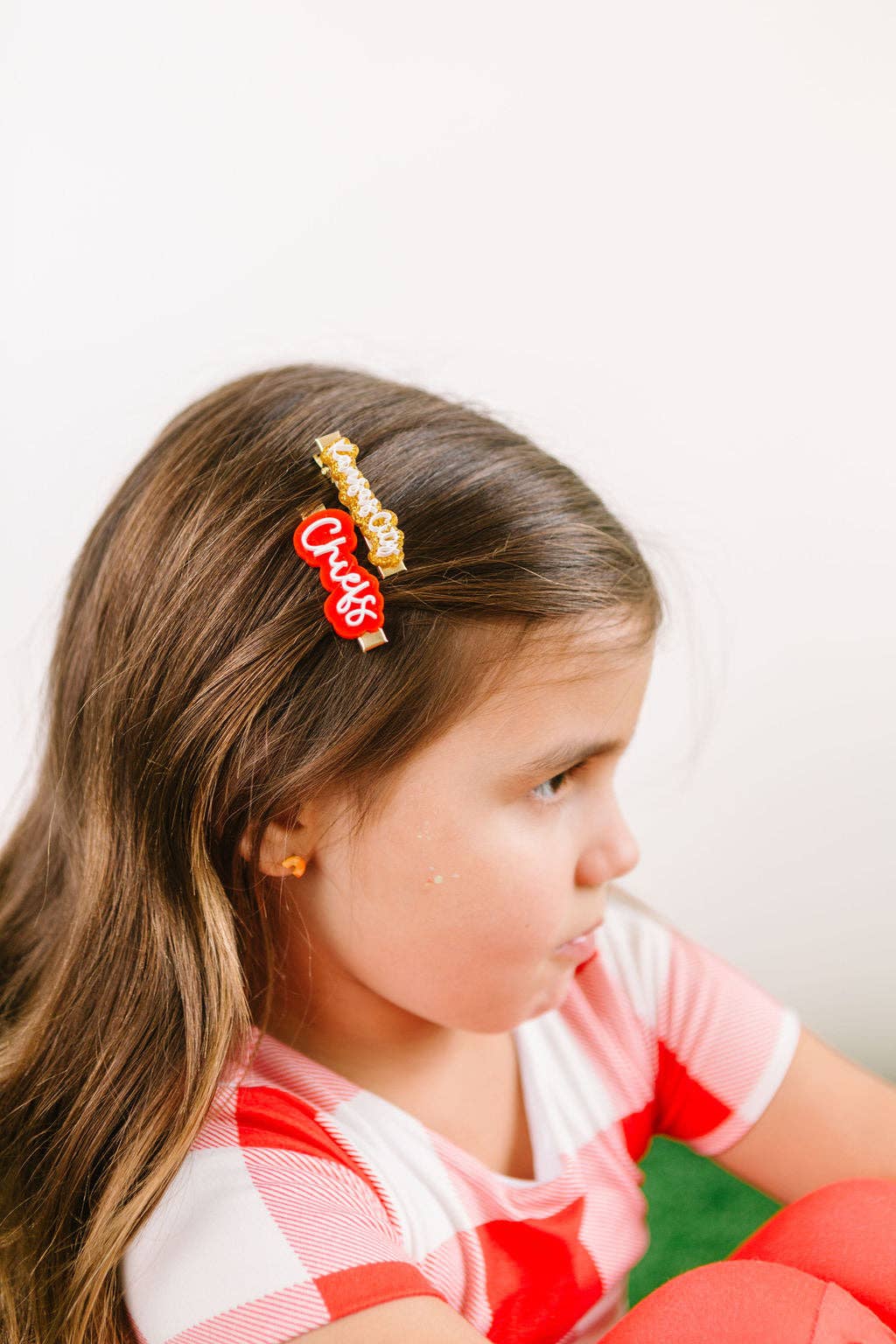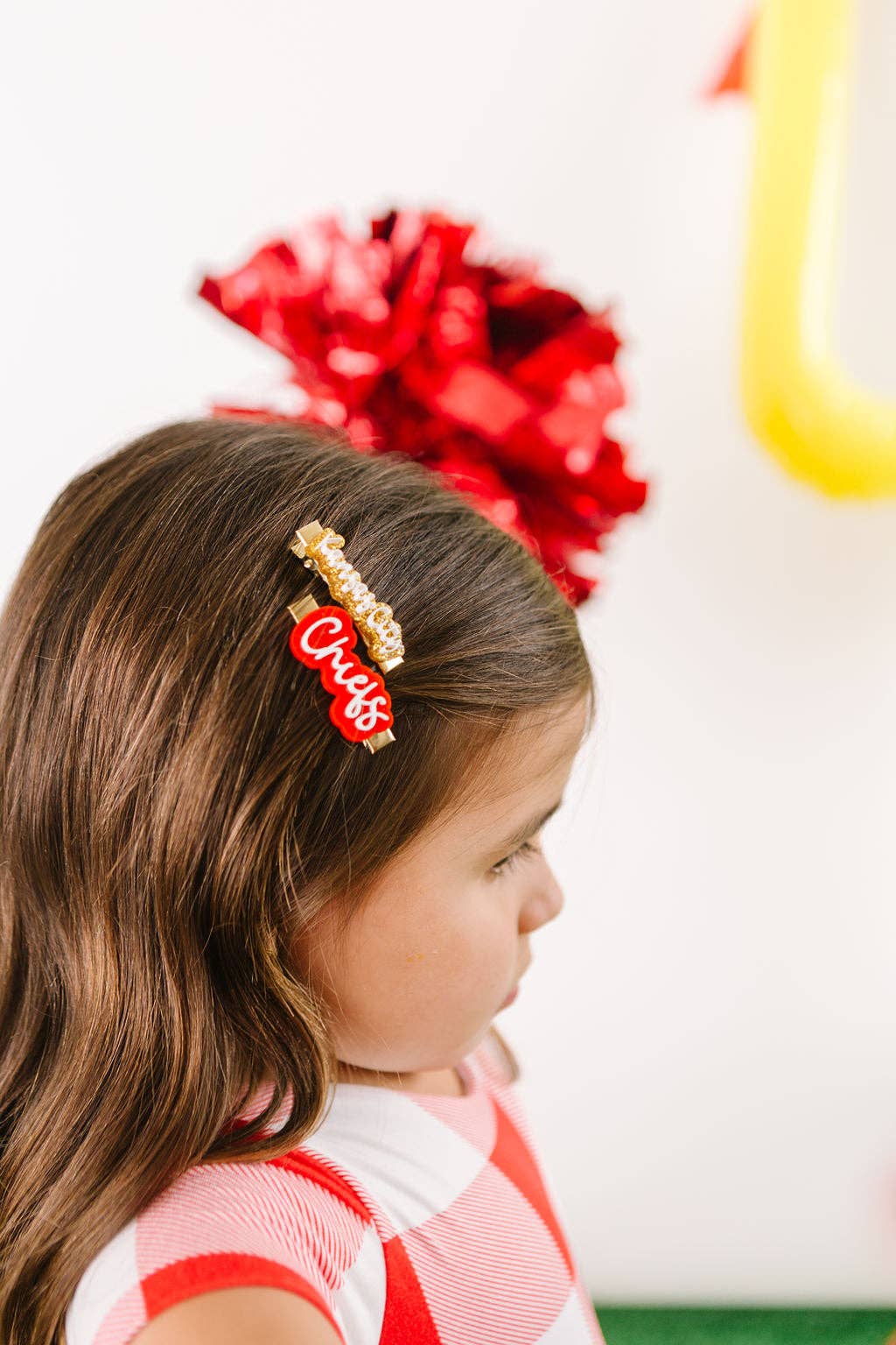 This listing is for two clips. Our Kansas City acrylic clip set comes on two gold medium alligator clips that grips all types of hair nicely.