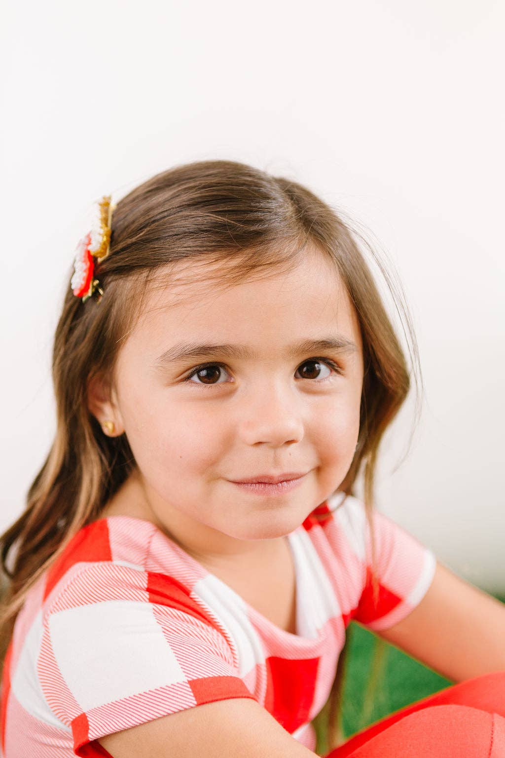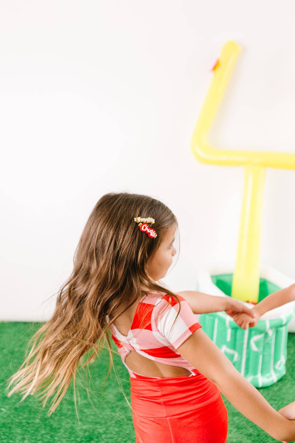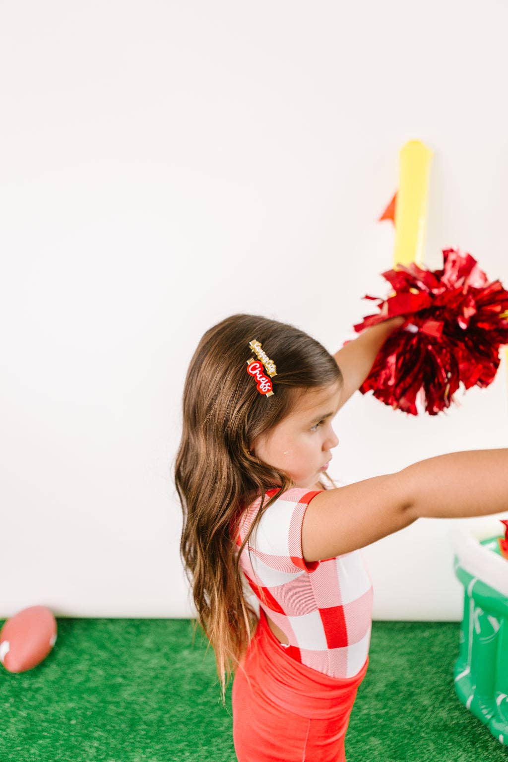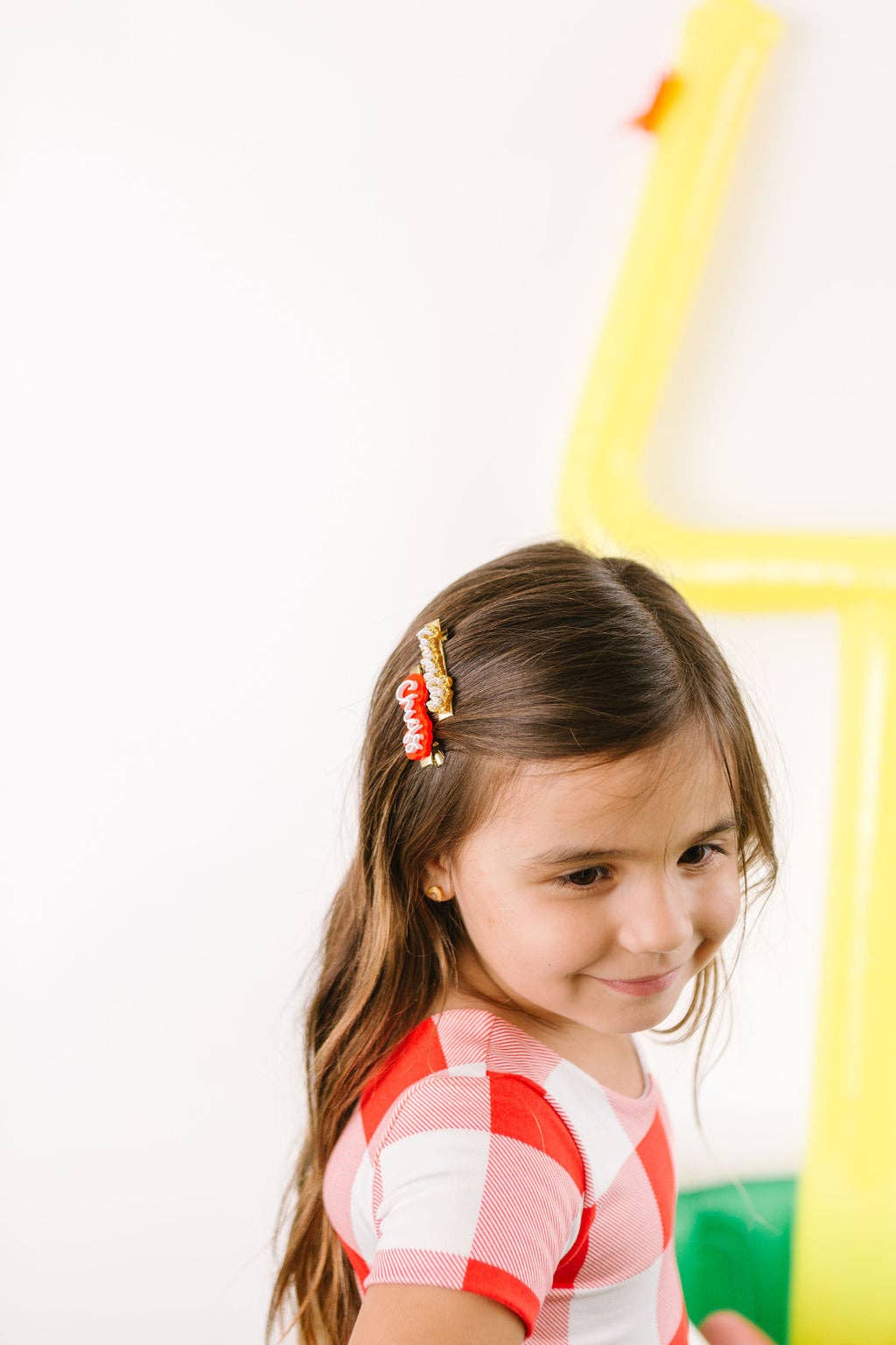 This listing is for two clips. Our Kansas City acrylic clip set comes on two gold medium alligator clips that grips all types of hair nicely.