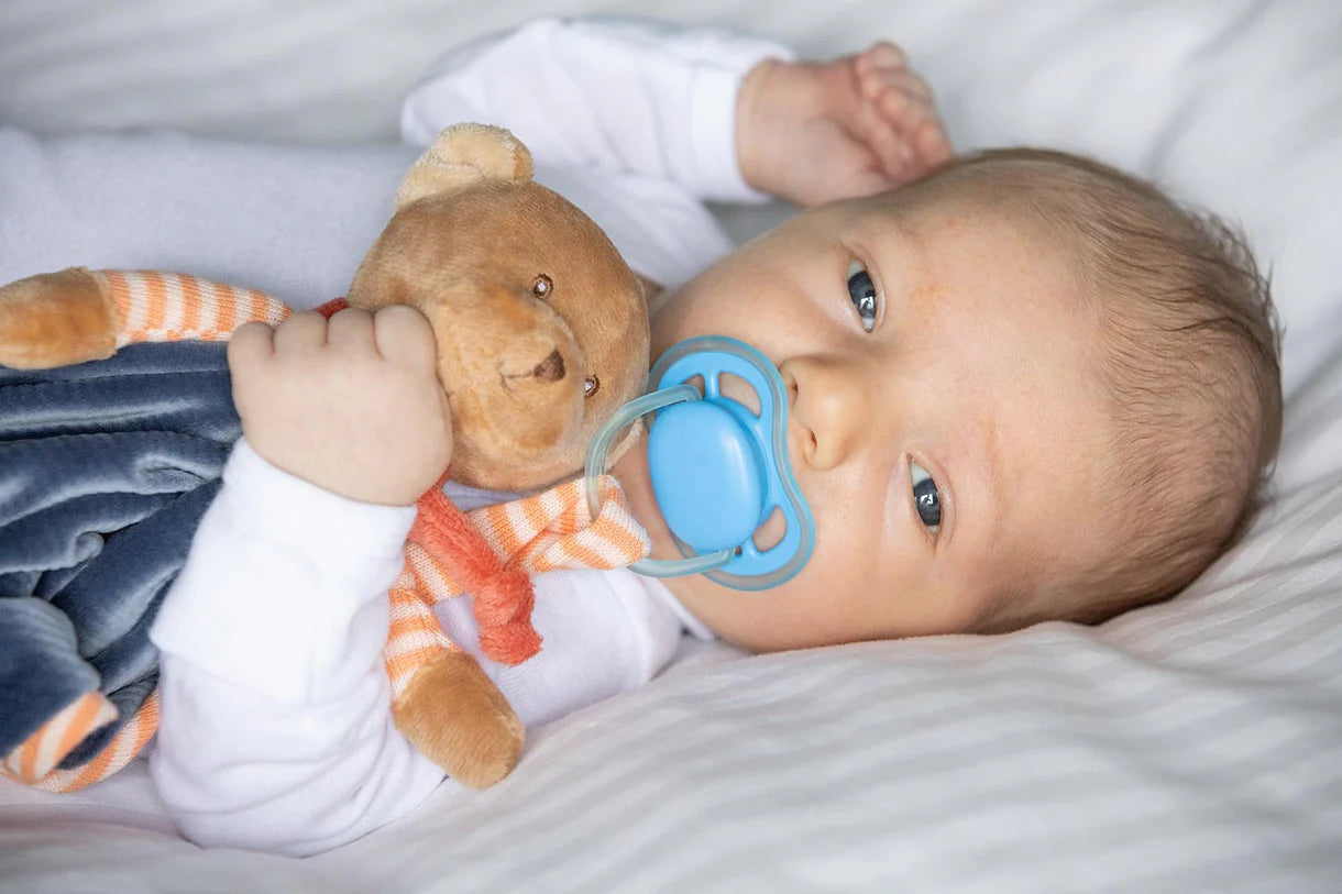 Meet Mavi Blankie! He is made out of a special plush that is incredibly soft to the touch and the perfect gift for a newborn! The blanket is blue corduroy with yellow patches and a striped white and orange trim. The inside of the blanket is white with a velcro pacifier holder. Mavi Blankie has a blush scarf as a finishing touch.