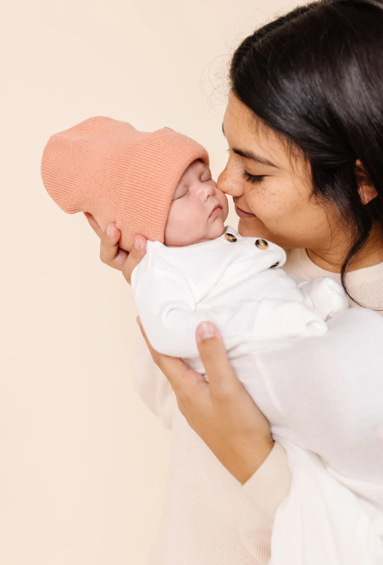 Stretchy, soft, and oh so warm, these beanies were designed and created to be worn over and over. With an adjustable cuff, you can wear it cap style or slouchy. Pompom or not, there is something cozy for everyone in the family. #twinning