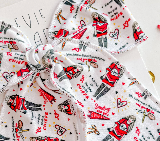 Show off your Swiftie pride and Kansas City Chiefs spirit with this exclusive, custom-made Taylor Swift oversized bow from Evie Pearl Handmade. Inspired by Taylor’s iconic look in her adorable KC Chiefs dress and black boots, this headband is crafted from soft DBP fabric, offering a comfortable fit for fans of all ages. Perfect for game day or everyday wear, it’s a must-have for Swifties and Kansas City fans alike. Handmade with love, this unique accessory combines style, comfort, and team spirit, designed exclusively for our Evie Pearl Handmade customers. •Oversized Bows come on right slide large alligator clip.