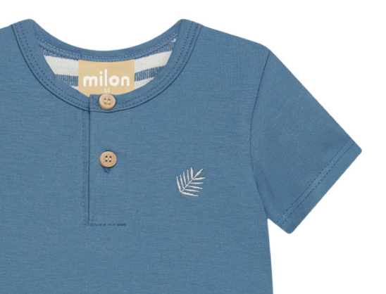 This coordinated bodysuit and short set is made for easy, everyday styling. The soft cotton bodysuit features short sleeves, a henley-style button detail, and snap closures for quick changes, while the striped shorts offer a comfortable elastic waistband with an adjustable drawstring. Designed for comfort and movement, this set works perfectly together or as mix-and-match staples. A go-to outfit for warm days, playtime, and casual outings.