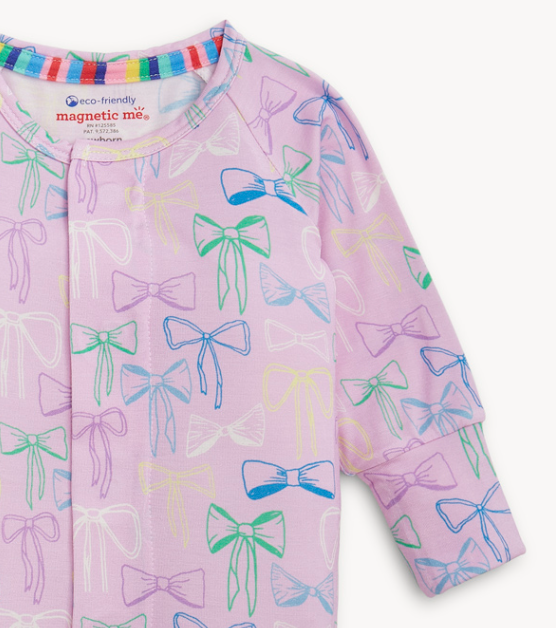 - Magnetic closures: magnets line the seam from the neck to upper thigh for sizes up to 0-3m & from neck to crotch for sizes 3-6m and up.